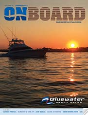 OnBoard is the award-winning, complimentary magazine produced by Bluewater Yacht Sales for our customers. Within this dynamic publication, you will find stories on everything from our new boat brands and their latest models to leading-edge engine component technology reviews. Additionally, our incredible customers share their stories of buying, selling, cruising and fishing with the help of our accomplished team of professionals. Read our latest and past editions to learn why working with Bluewater Yacht Sales is about more than buying or selling a boat, it is about becoming a part of our family and enjoying the Bluewater lifestyle together.