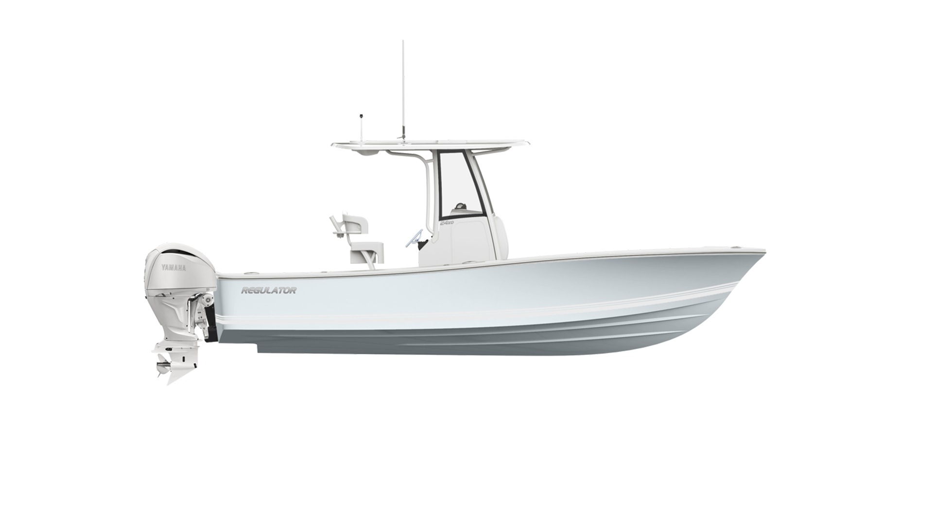 The latest addition to Regulator’s XO family delivers everything you need in a center console crossover. Fulfilling the XO promise of versatility and adventure, the Regulator 24XO gives you easy access to lakes, bays, and skinny waters, along with the capability to head offshore when the time is right. Anglers will love the abundant deck space, forward and aft casting platforms, standard livewell, and in-deck fishbox. The hull’s 16-inch draft, moderate deadrise, optional hydraulic jackplate and Minn Kota trolling motor make shallow-water maneuvering easy for fishing or sandbar fun. Equipped with a standard Yamaha F350, factory-installed Garmin® electronics, and signature Fiberglass T-Top with Integrated Wraparound Windshield, the Regulator 24XO is ready to go anywhere and do everything.