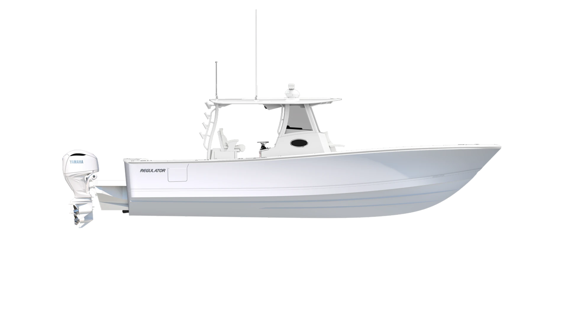 The helm of the Regulator 35 looks like nothing else in the fleet, with a centerline helm, twin 22” Garmin 9000 series displays, and triple helm seats with optional teak trim available. This boat includes Regulator’s signature MyHelm integrated electronics system, as well as the Yamaha Next Gen Digital Boat Controls and Fusion audio. Like the other Regulator models, the 35 includes a wraparound windshield but comes with a newly designed T-top for better ventilation and air distribution.