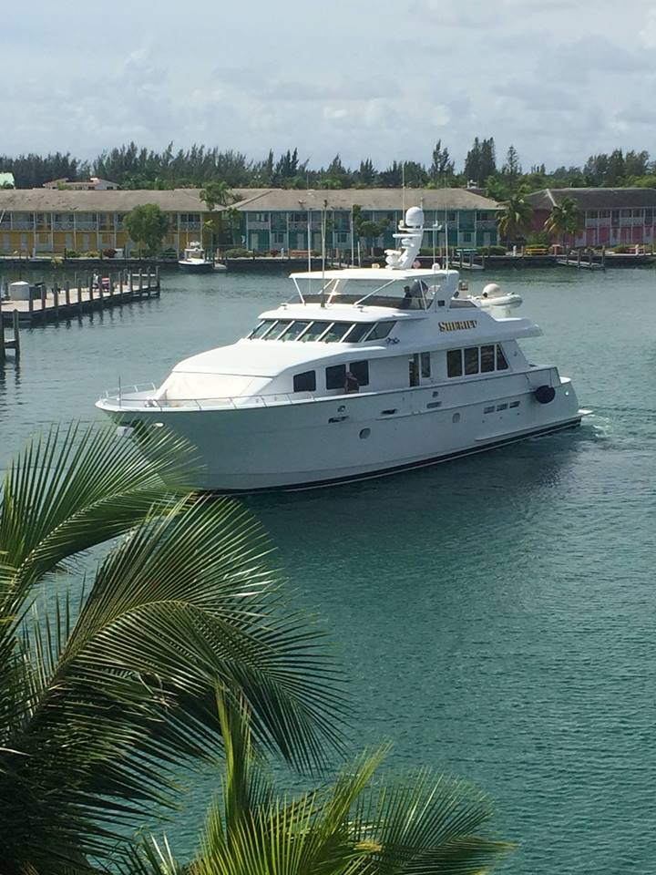 SOLD! 1998 Hatteras 92 “Sheriff” leaving Port Lucaya in The Bahamas for her new home in Fort Lauderdale. Congratulations to her new owners and BYS Sales Professional Clark Sneed!
