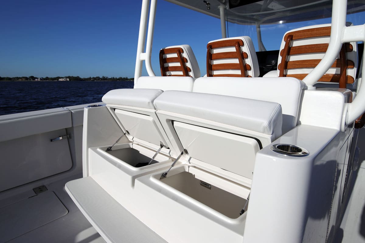 Bluewater Sales Professionals Bob Hoste and Jud Black have each been responsible for selling two of those new builds and were some of the first souls to demo hull one during the Miami International Boat Show. “First of all, unlike a lot of boats in this class, the 43 is very cleanly designed, and the use of space is impressive,” Hoste says. The sea trial included running in every direction in the Gulf Stream with an opposing 18 knot NE wind—the makings for a classic winter sailfishing day— modestly described by Bob as a “light to moderate” chop. “Even the Jupiter guys were impressed by the ride.” He adds, “the down-sea tracking was incredible, and the boat rode super smooth and dry.”