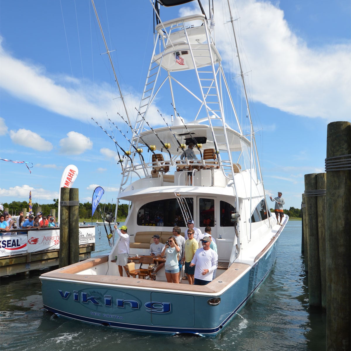 An event of note that Viking is proud to support is the Big Rock Blue Marlin Tournament – One of the largest blue marlin tournaments in the world. Each year, nearly 200 teams battle it out for release points and the thrill of bringing a massive blue marlin to the scales in Morehead City, NC for a shot at a multi-million dollar purse. A feat that escapes most teams and only a few can lay claim to each year. But as it turns out, A Viking yacht has been hitting the scales during The Big Rock on a yearly basis and placing on the leaderboard for the last three years.